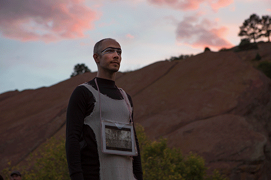 Sophont in Action, October 1, 2015 , Live Cinema Event including 30 Performers and Projection Mapping , Black Cube Nomadic Museum at Red Rocks Park in Colorado Photo: Sara Ford