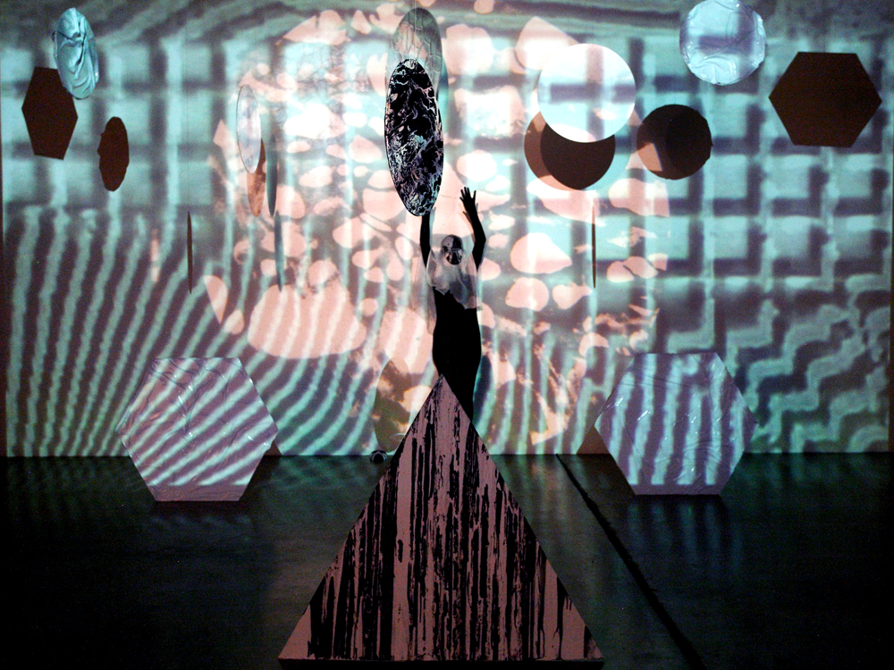 Suzy Poling - Elemental Forces, wood, paint, glass, light, video, slide projections. 2012