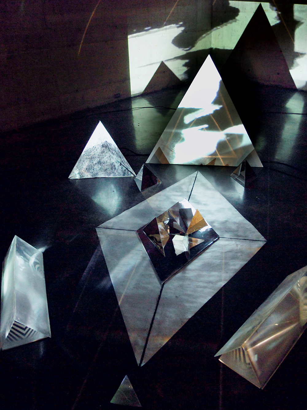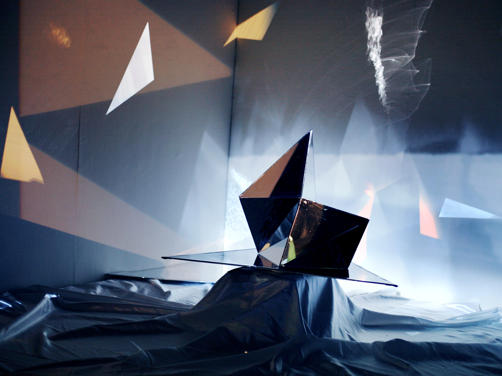 Suzy Poling - Mirror Crystal System, mirror, projections, light, silk, SOMArts. 2013