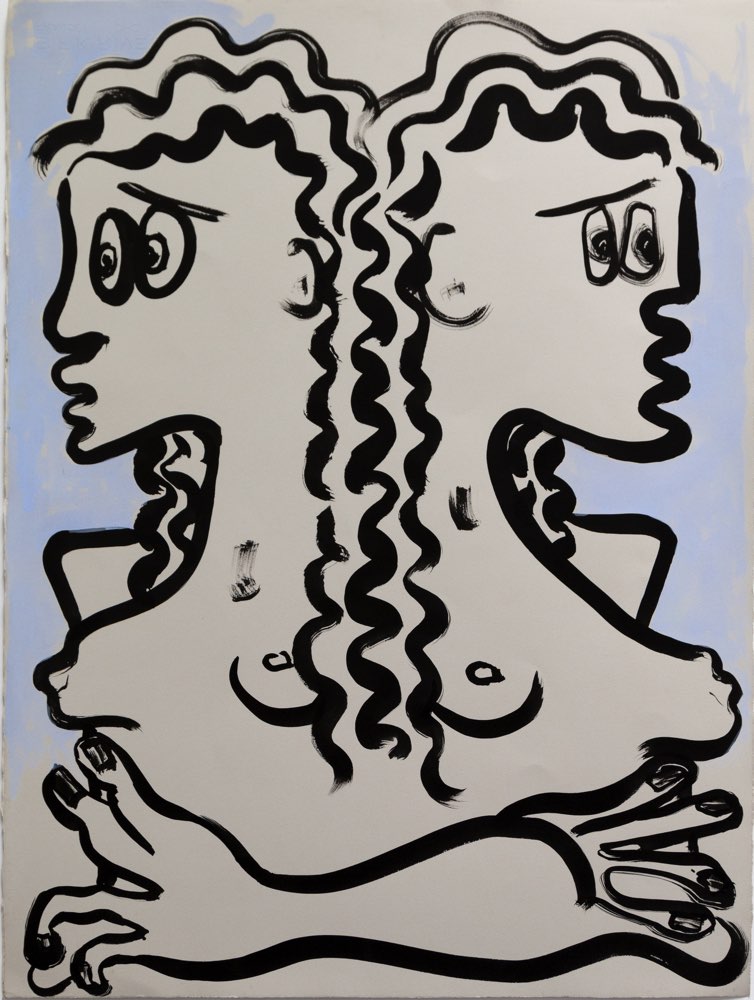 Janus Flounder, 2019, Ink and flashe on paper, 30 x 22 in. Backbend, 2019, Ink on paper, 18 x 9.5 in.