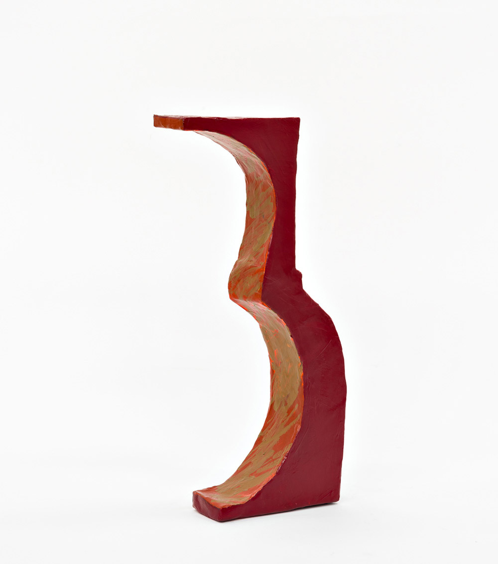 REBEKAH GOLDSTEIN Brick Red and Yellow Paper mache, foam, oil and acrylic paint 5.5 x 8 x 8 inches  REBEKAH GOLDSTEIN Lavender Stripe Pattern, 2016 Paper mache, foam, oil and acrylic paint 8.5 x 6.5 x 2 inches