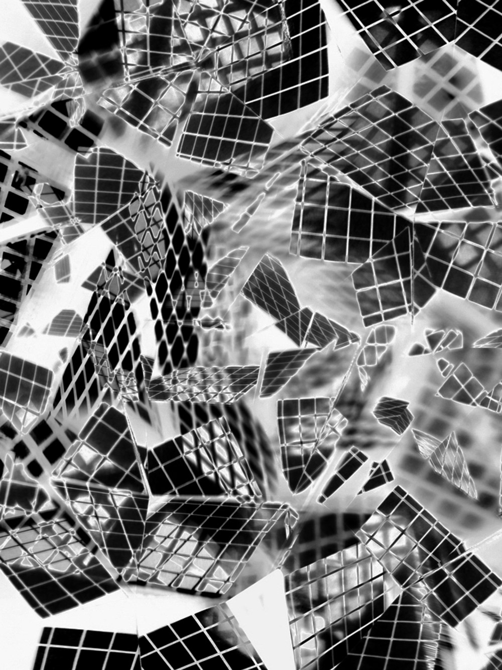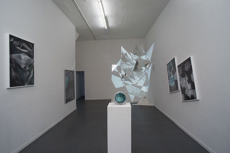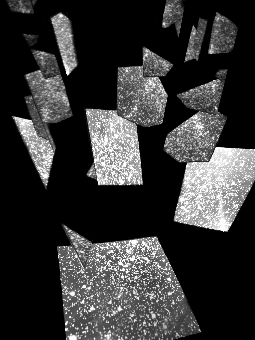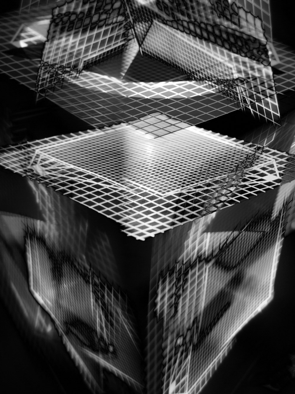 The title of the exhibition, Total Internal Reflection shares its name with the optical phenomenon that occurs when traveling light encounters a lesser dense medium, and as a result its path is diverted, such as light passing from glass to air or water to air. The title also invites reference to the mind seeking internal reflection. This new body of work explores cyclical forces of nature, transformation and the phenomenon of sound and light through a single channel video projection, photographs, site-specific sound and light installation and performance. Poling’s light installations experiment with scale and spatial coherence as altered through the use of mirrors, lenses and optics. Poling explains: “Scale is an important component to my work; constructing and shooting from the miniature models allows me to reference vastly massive landscapes, architectural matrices, portals and inter-dimensional space.”