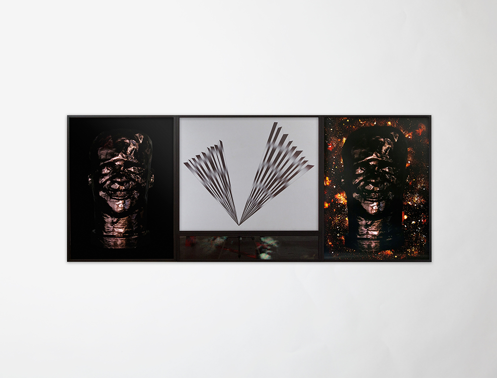 EFFIGY, Metalic gyclee mounted / Ballpoint on card stock / Gyclee Print / Metalic gyclee, bleach, 103 x 41 inches, 2013