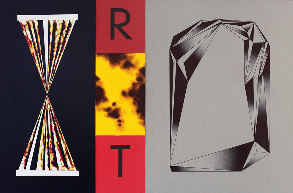 RT, Bleach on Photopaper, Ballpoint pen on posterboard, found letters, ballpoint pen on cardstock, 20 x28 inches(estimated dimensions), 2012