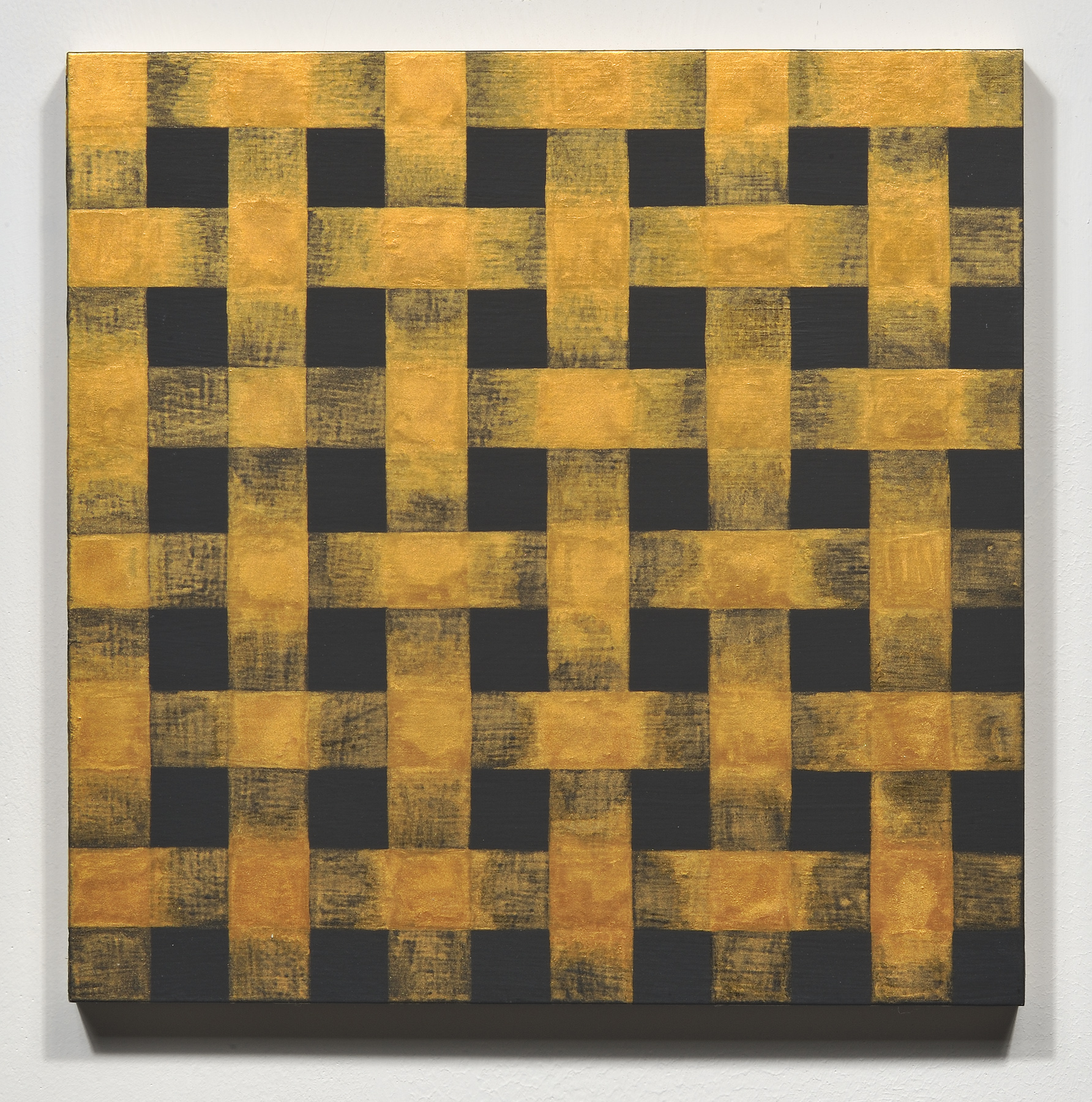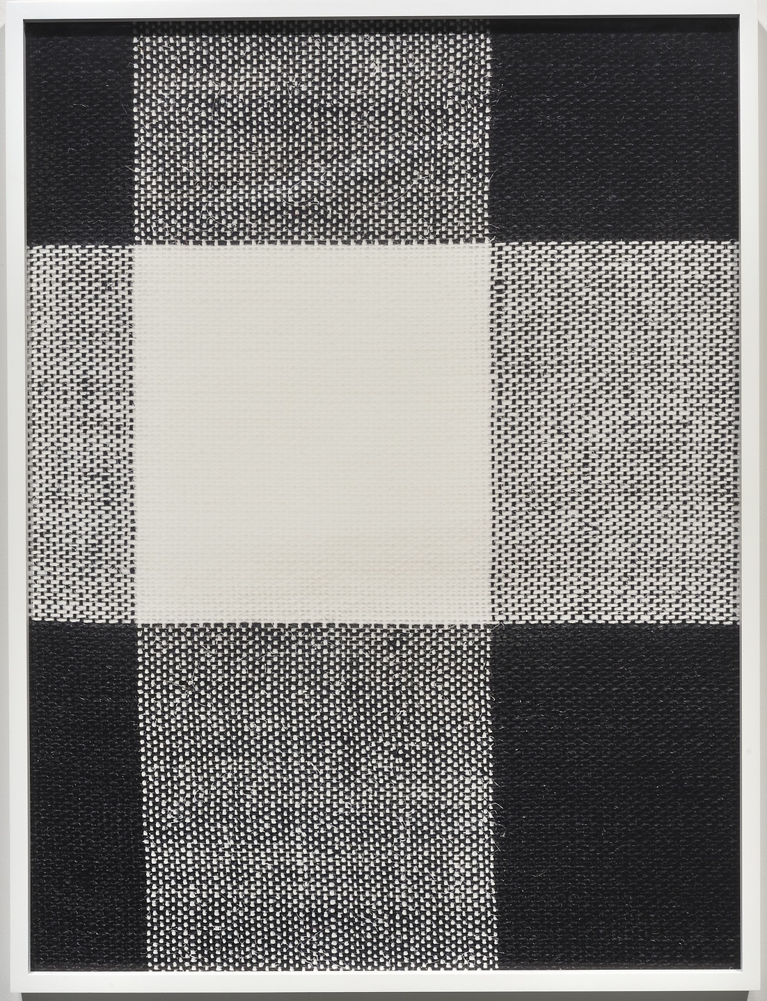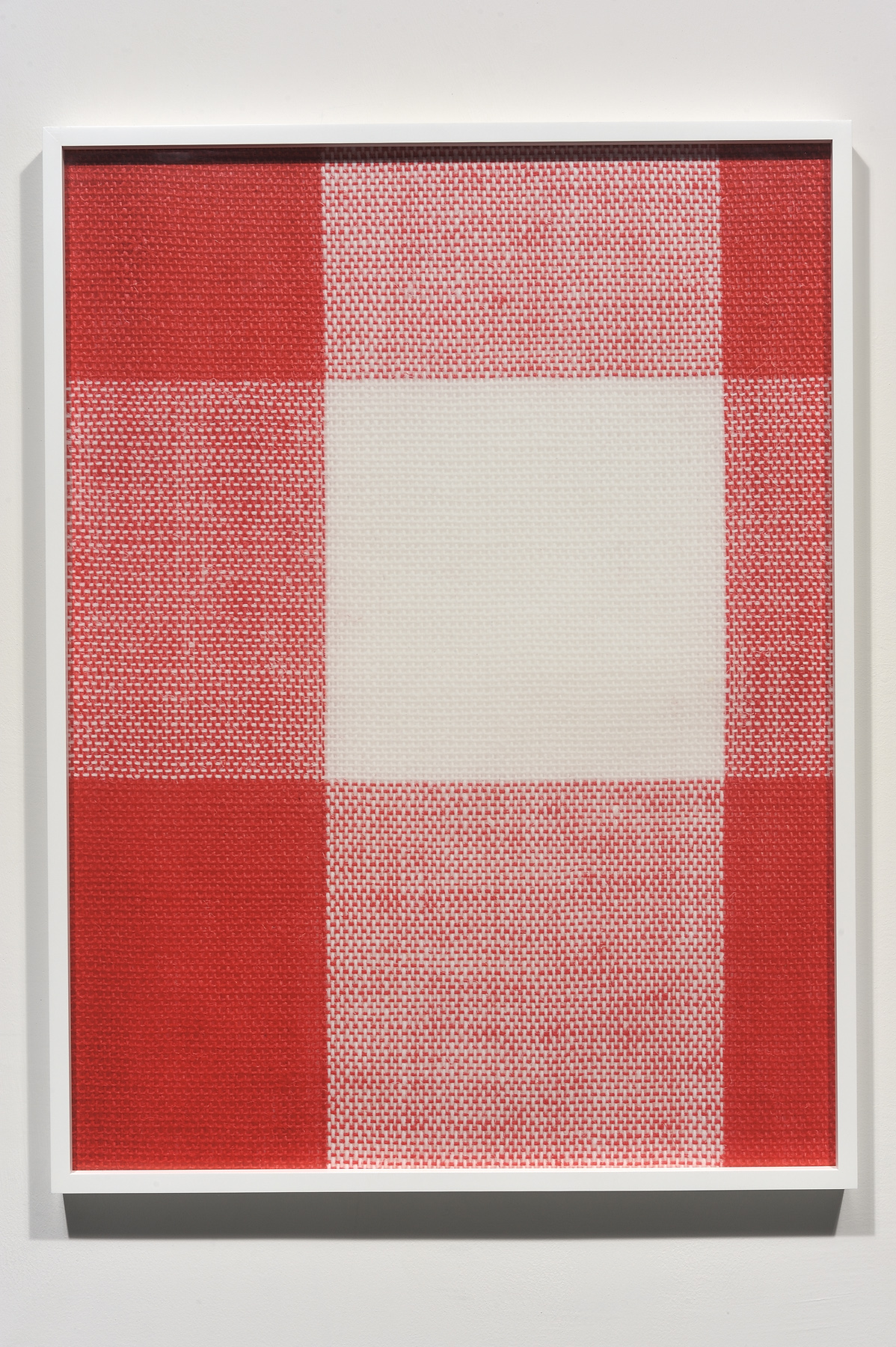 Untitled (white/red), gingham rubbing on gesso, 12 x 12 inches, 2011