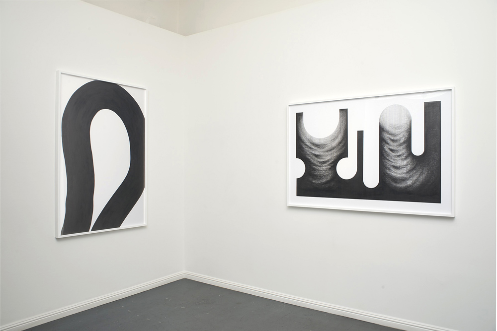 Deiana’s recent work in graphite translates digital gesture into analog form. Beginning with an exploration of Photoshop brushstrokes, Deiana makes marks in the digital world, zooming in to find rough spots and imperfections. Once he identifies the miscalculated strokes, he explores the negative space of the subject, bringing the trace into the analog realm with graphite and paper.