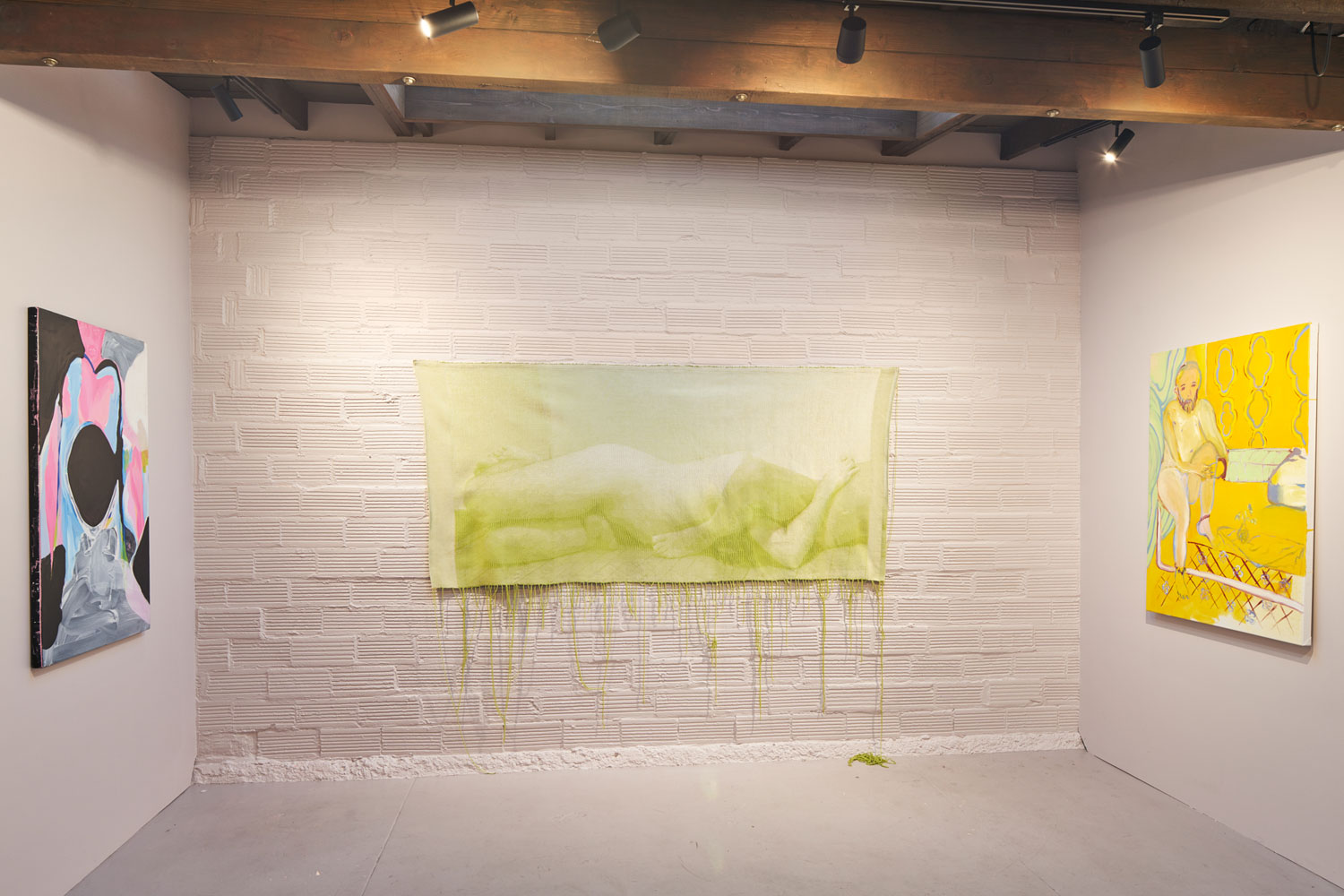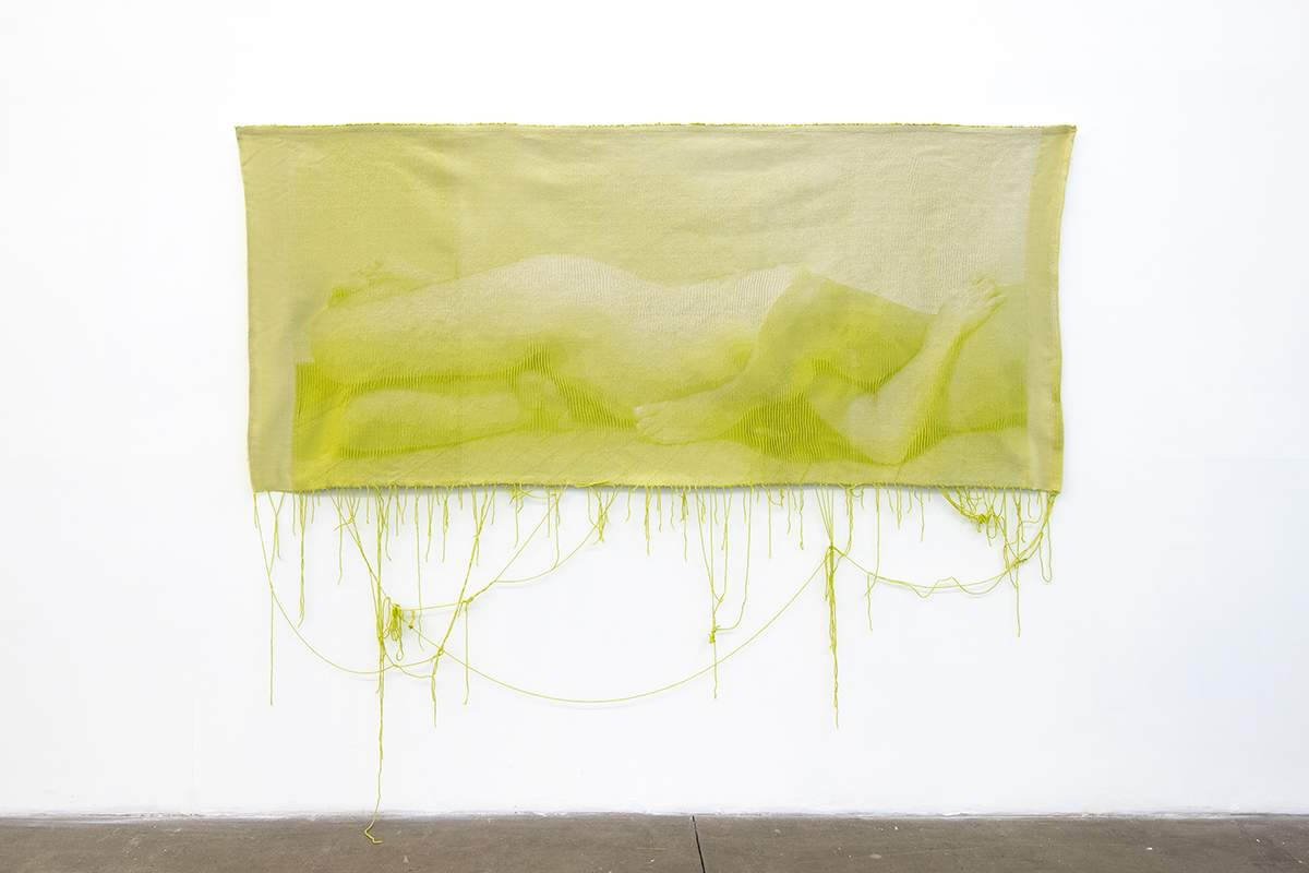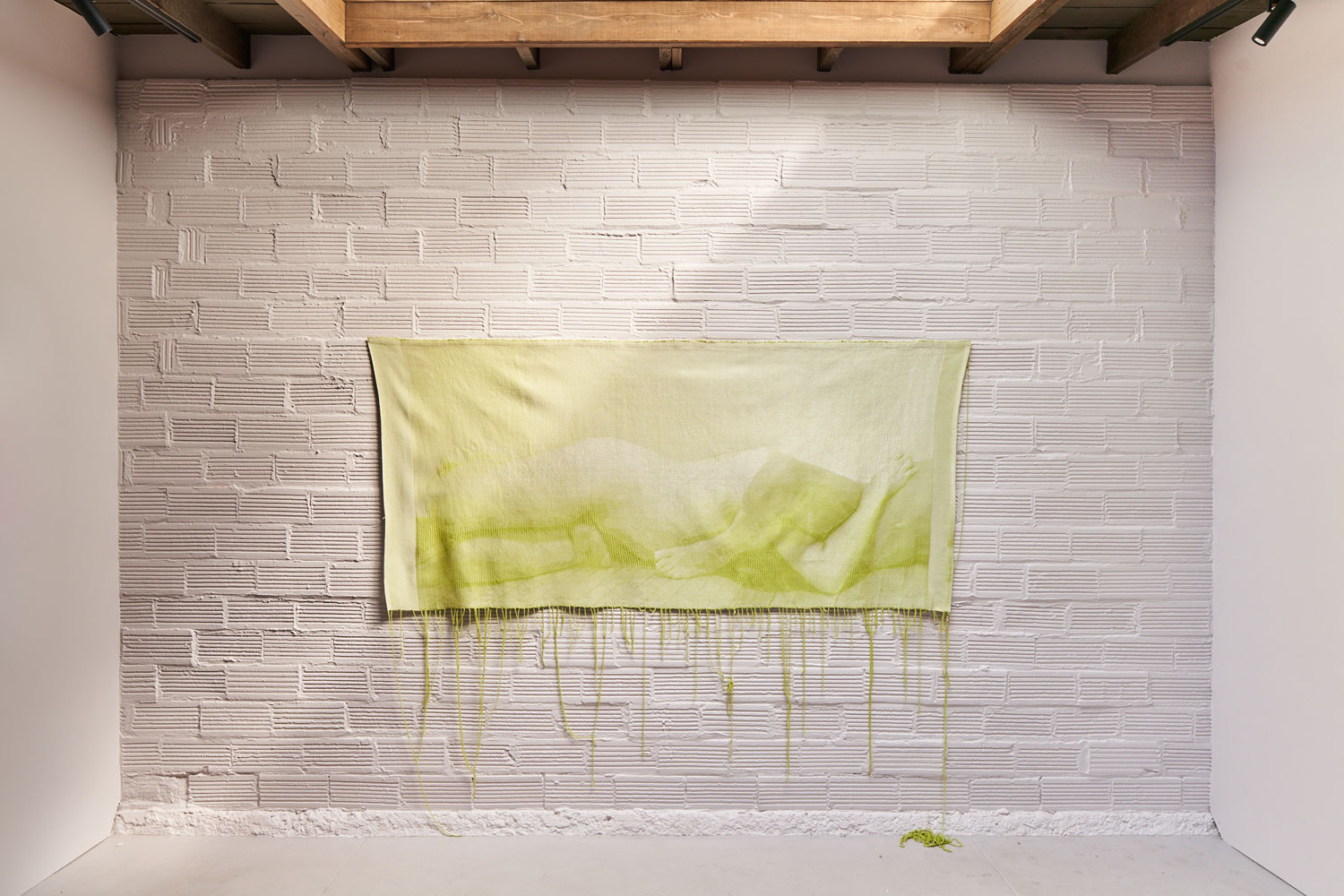 Mia Weiner (b. 1991, Chicago). Responding to the historical textile, Weiner creates intimate declarations that explore identity, gender, and the psychology of human relationships. Mia received her MFA from the School of the Art Institute of Chicago (2020) and her BFA in Fiber from the Maryland Institute College of Art in 2013. Her work has been exhibited internationally including in New York, London, Berlin, LA, Miami, and Chicago. Mia is represented by Ochi Projects.