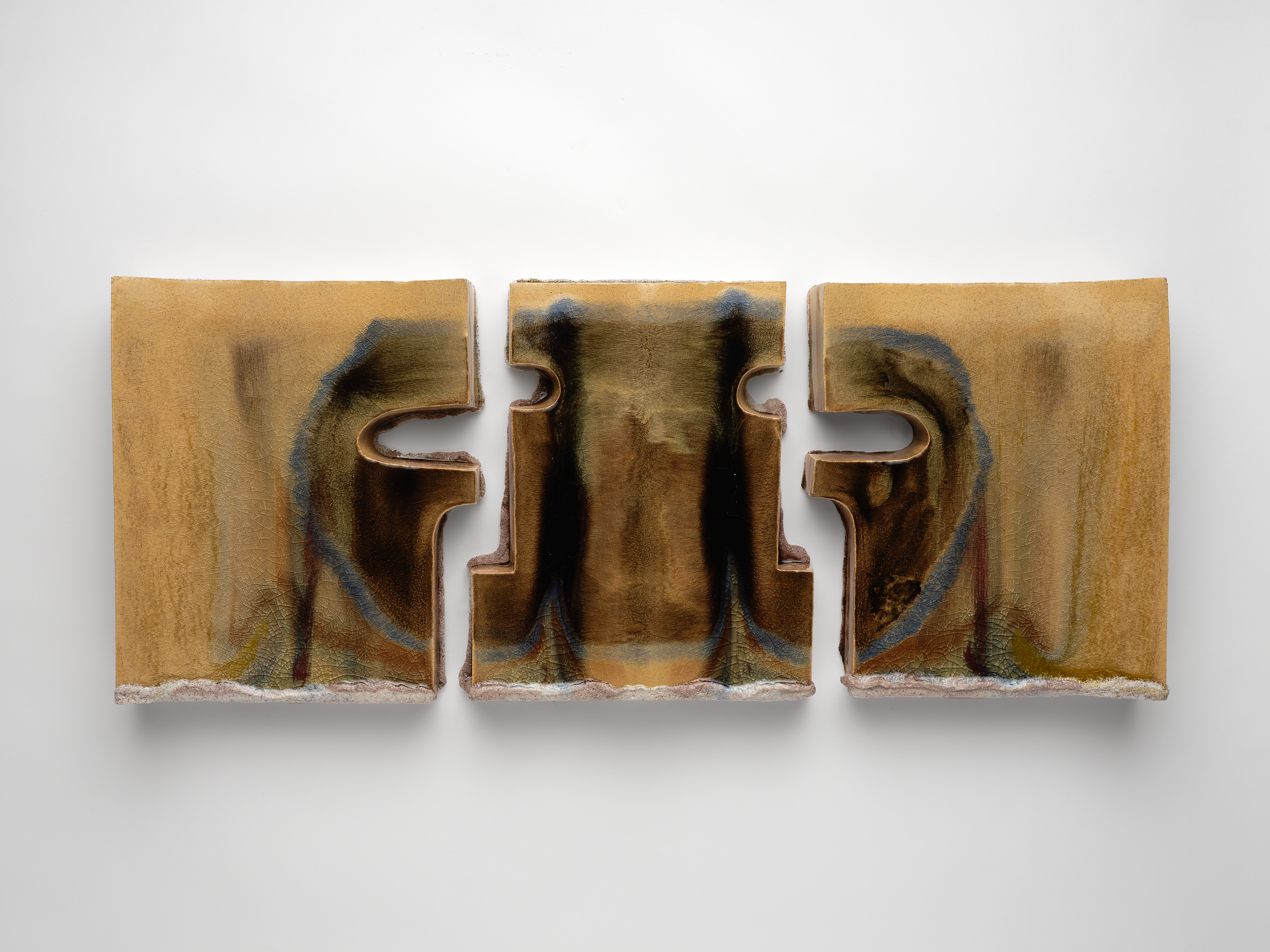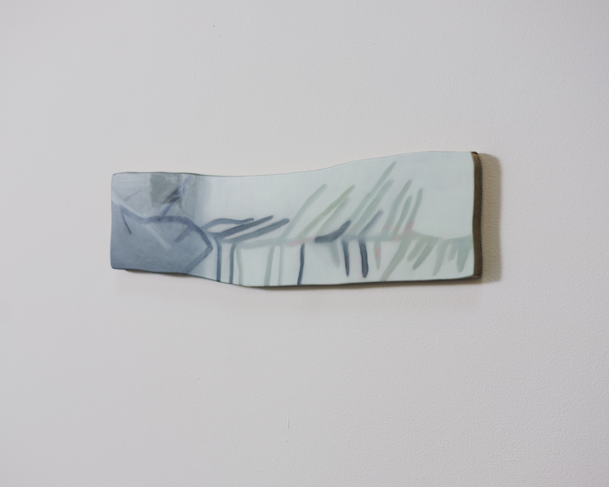 Cross Lypka’s three-dimensional wall works and free standing sculptures are the product of shared ideals and an iterative process of collaboration. From Cross’ two dimensional drawing Lypka translates and creates the coil built clay sculptures, which the two then refine and treat the surface with glazing. In the work Noseeums, Cross Lypka have introduced grooves into the clay body (which they call aqueducts) on the top of the forms. The pieces are worked over long stretches of time, reflecting the geological formations of cliffs and river beds. The finished pieces capture the transcendent nature of how a viewer’s position in the time space continuum offers new perceptions at each vantage point.