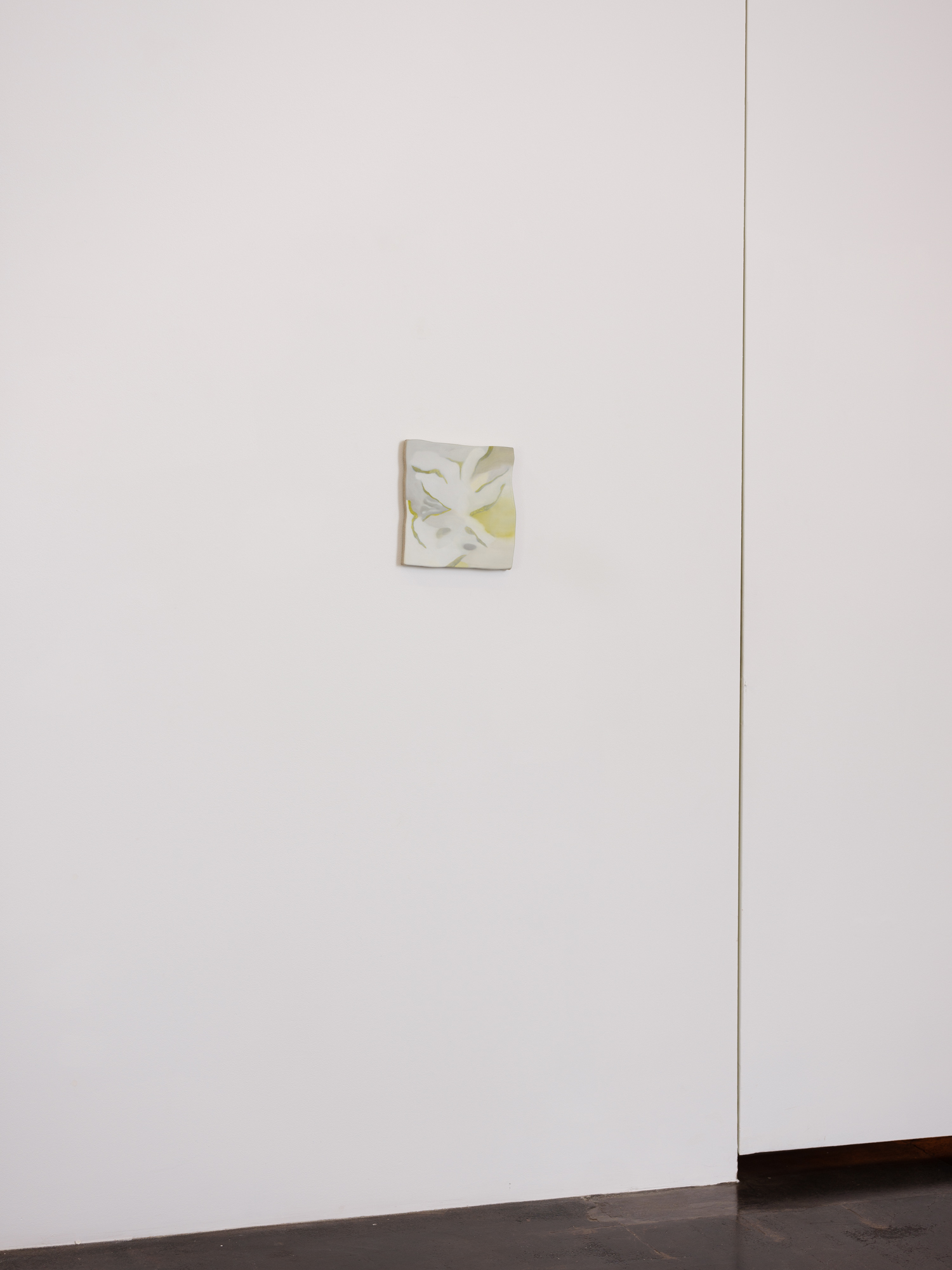 The meticulous and simultaneously ethereal nature of Luz Carabaño’s work immediately resonated with Lypka and Cross. Her small canvases Huellas and Anochecer appear to float off the wall. The images resist legibility as the experience of viewing the work takes hold. Carabaño paints from reference photographs of peculiar encounters with shadows, traces left on surfaces, and the natural world; her source images fade in the process of painting. While in her studio, Carabaño searches for elements of the unknown, the particular moment when a recognizable form evolves into something new. The viewer is left with a reverberation of that first encounter as processed by the artist. The final image is like an impression made on our sight after staring too long at the sun.