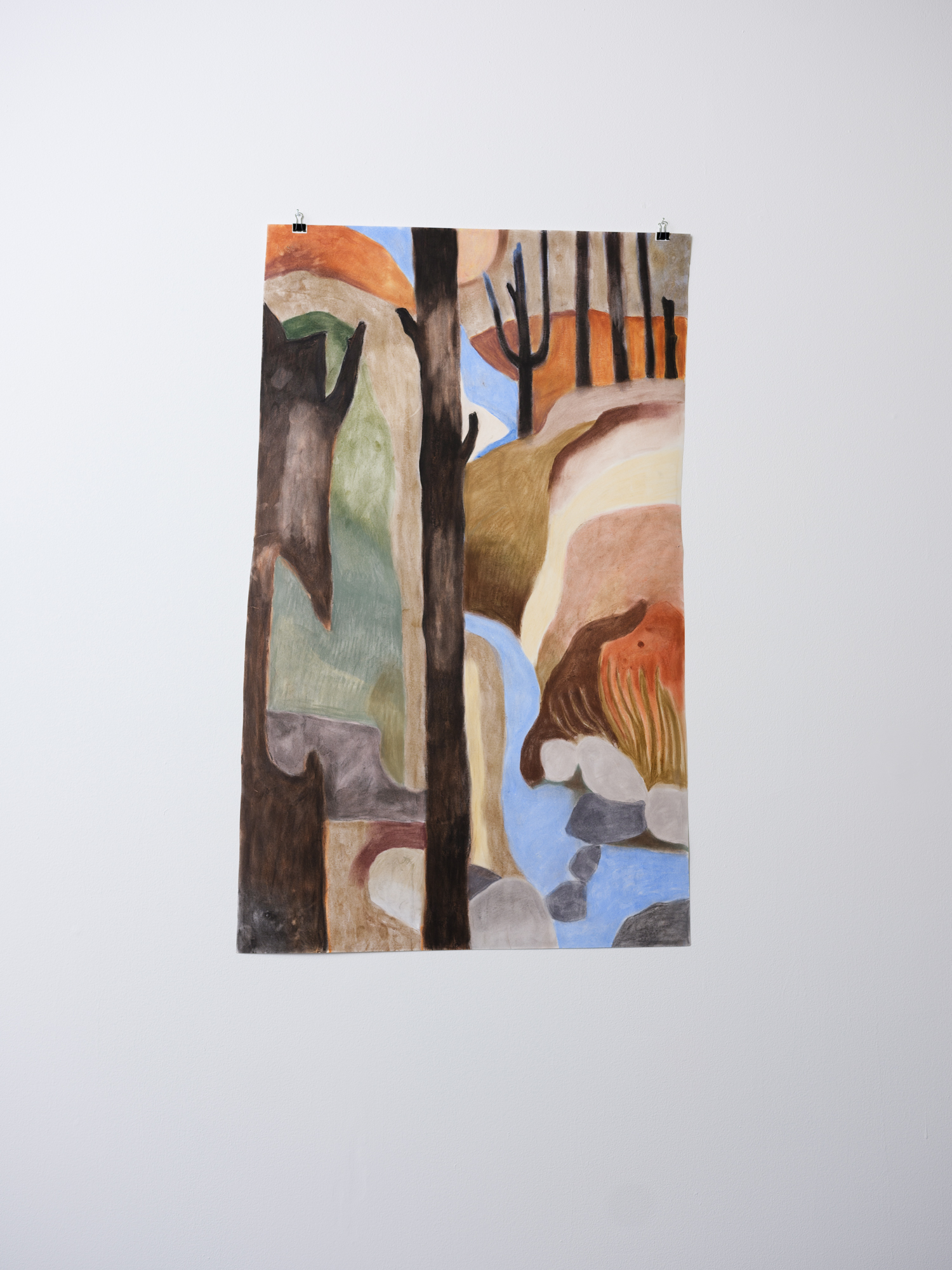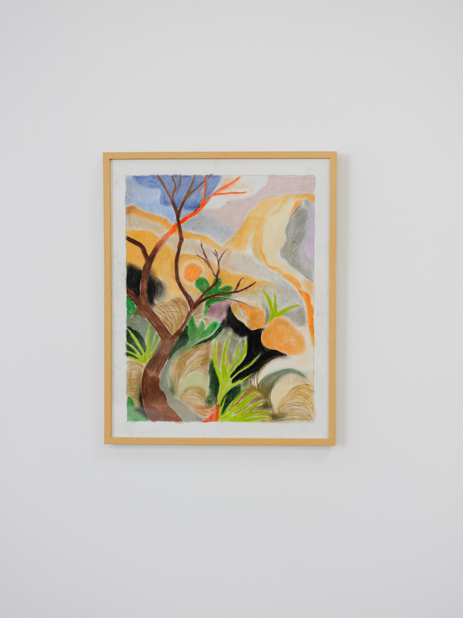 After moving full time to the desert a few years ago, Aidan Koch’s work shifted to observe and consider the natural world she is immersed in and working to preserve. Without isolating distinct flora and fauna in her pastel renders, Koch places us inside the geometry and pure color of the views of her Southern California home. The works included in Last Light are based on Koch’s memory of two sites: a spring in the Bighorn Mountain Wilderness near her home in Landers, California, and a burn site in the Golden Trout Wilderness in the Sierra Mountains. Originally from the Pacific Northwest, Koch finds the force of the sun upon the wide open landscape of the desert an eternal third element for her to explore in her practice.
