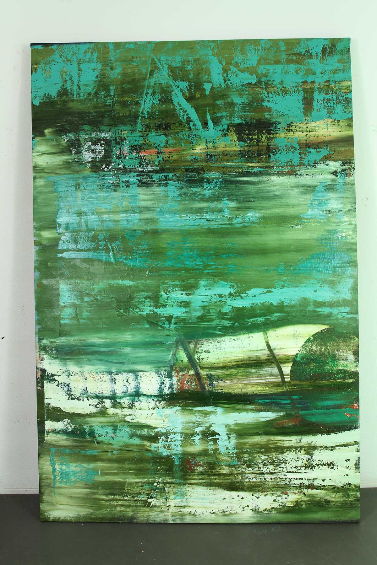 Miguel Arzabe - untitled (big green), oil on canvas, 83 x 55 inches, 2013
