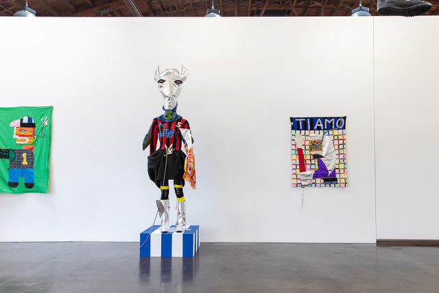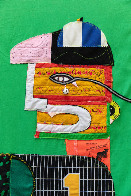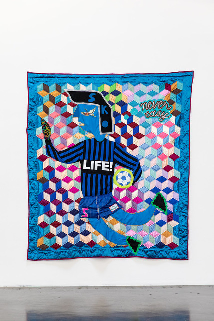 Begovic’s identity is also shaped by his work as a soccer coach, mentoring young players on and off the field. This sense of play translates into his art: he approaches making with a "playful, childlike curiosity." Whether constructing tapestries, collages, installations, or performances, Begovic embraces spontaneity, channeling instinct and movement to guide his mark-making. The sewing machine serves as his de facto tool, allowing him to draw with motion and refined trust in his instincts. He describes this process as "organized scribbles," letting movement guide his hands.