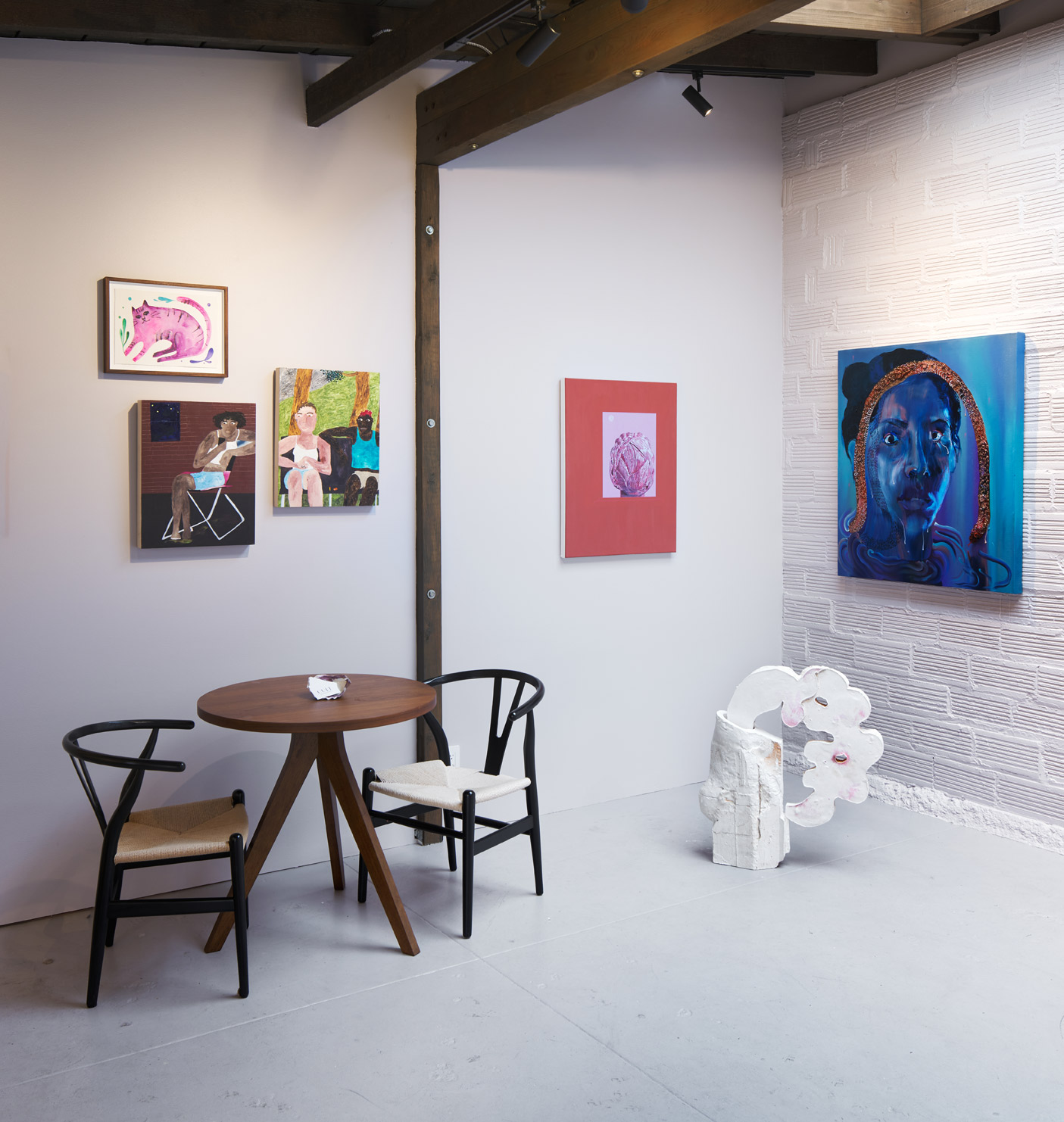 Storytelling is a connective tissue between all people and a marker of our evolutionary progress as humans. The artists featured in this presentation draw from familiar and imagined realities, weaving together modern mythologies that elicit déjà vu and envision the future. These 13 artists express a multiplicity of perspectives through painting, illustration, mixed media and sculptural work. Together they draw from historical and ancestral references as well as lived experiences to examine and celebrate the environment, intersectional identity and generational relationships by embracing the surreal.