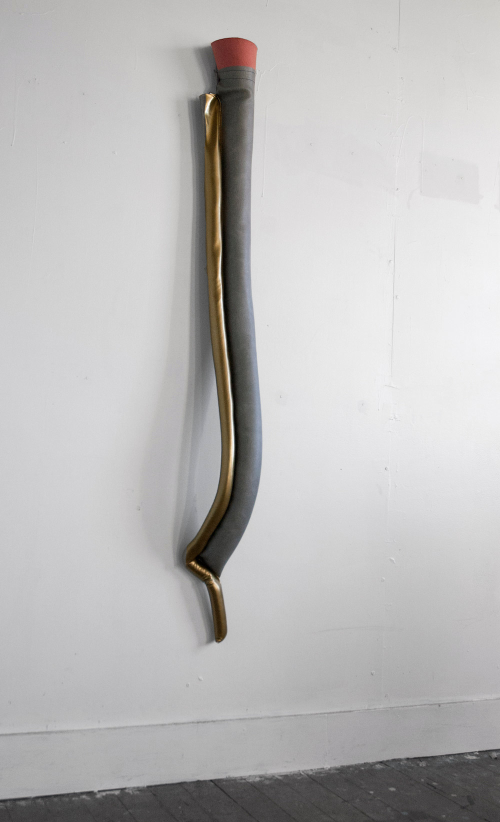 , Hung2 (grey), Sand, vinyl, and industrial felt, 6 inches x 4 feet, 2015