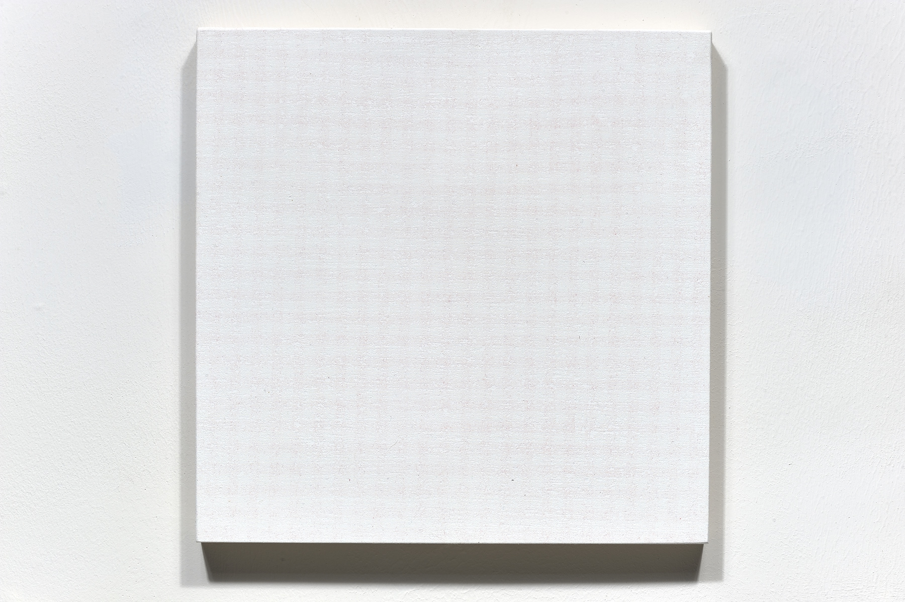 Untitled (white/red), gingham rubbing on gesso, 12 x 12 inches, 2011