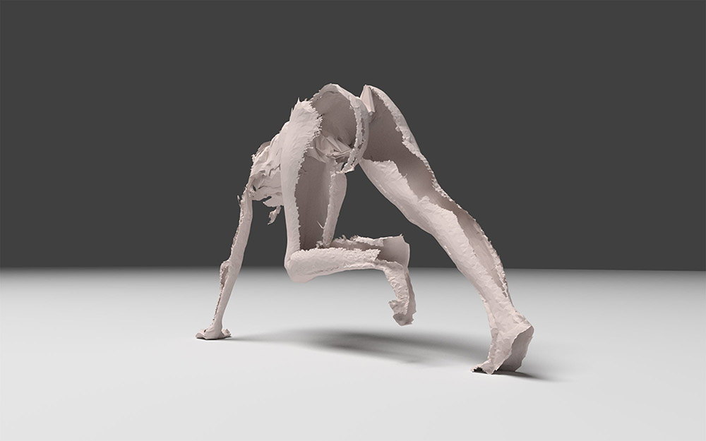 They Stood, Sat, or Half Reclined in the Poses they Saw in the Pictures, Platinum cure silicon, nylon powermesh, 24 x 72 inches, 2014