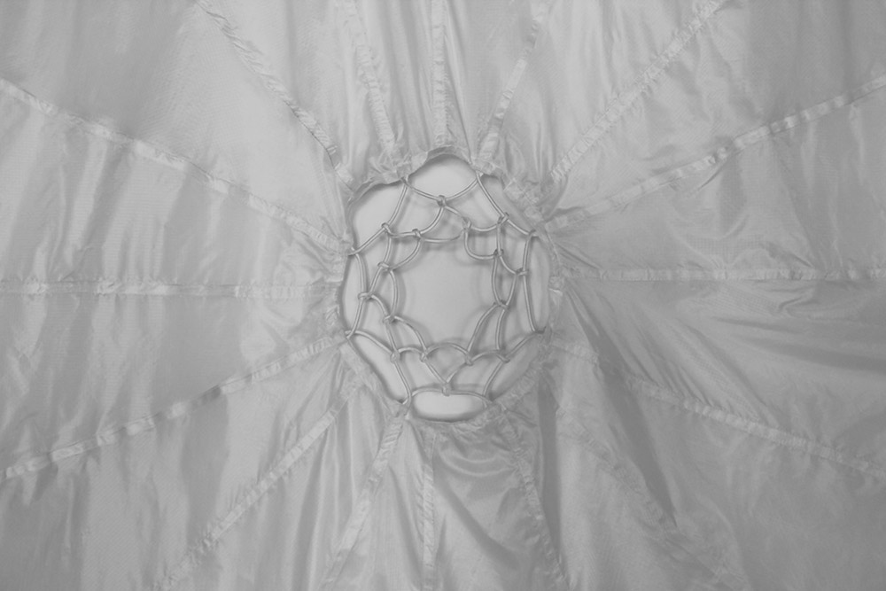 A Few Gossamer Yards, Parachute, Silk, zip cord, 96 x 96 inches, 2014