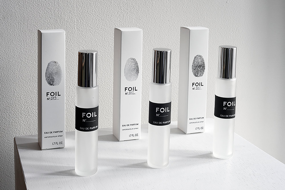 >QR CODE< (FOIL), Unique fragrance in glass atomizer, 1.5 x 1.5 x 6.5 inches, 2014