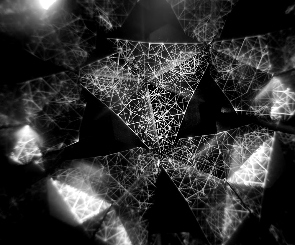 Suzy Poling - Mirror Crystal System, mirror, projections, light, silk, SOMArts. 2013
