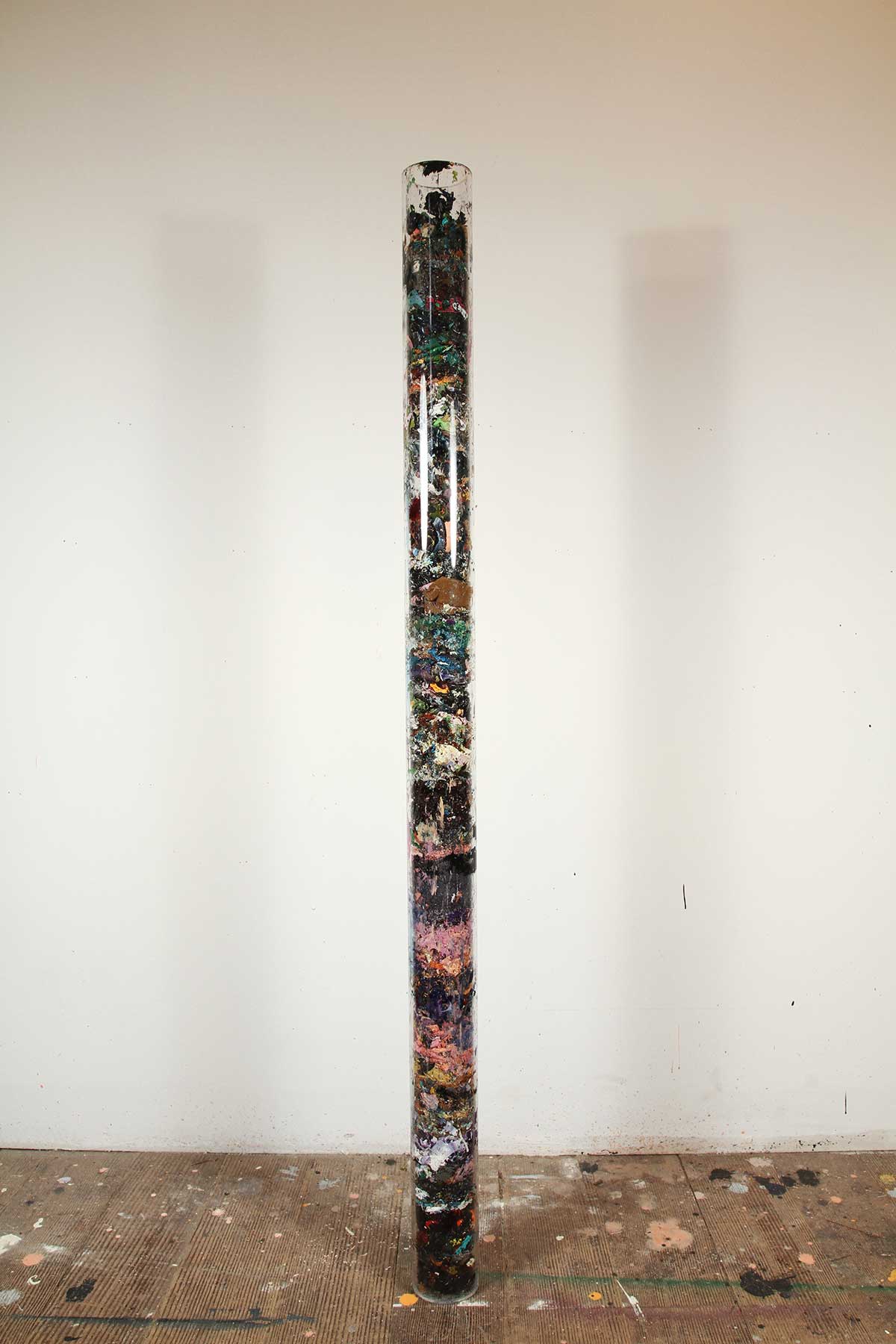 Miguel Arzabe - /*Reject Algorithms: 4 years of paint scraps*/, paint and tape, 2013Miguel Arzabe makes work poised between the canons of conceptual art and abstract painting. For this solo show /*Reject Algorithms*/ Arzabe uses a choreography of his body, in the act of making, to explore the relevance of painting in contemporary media and the ‘screen-deep’ phenomena of our daily subjective experience. In mathematics and engineering ‘rejection sampling’ is a basic technique used to generate observations of a task-orientated object through its function. The syntax /* is computer code used for comments, not language for the computer to perform, but instead intended to give human programmers information about what the code is supposed to do, who made it, why, etc.