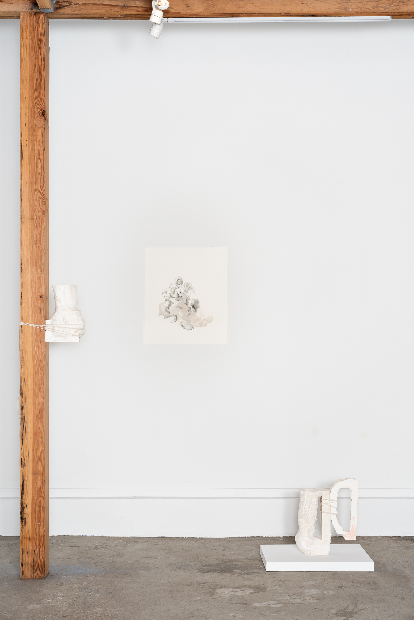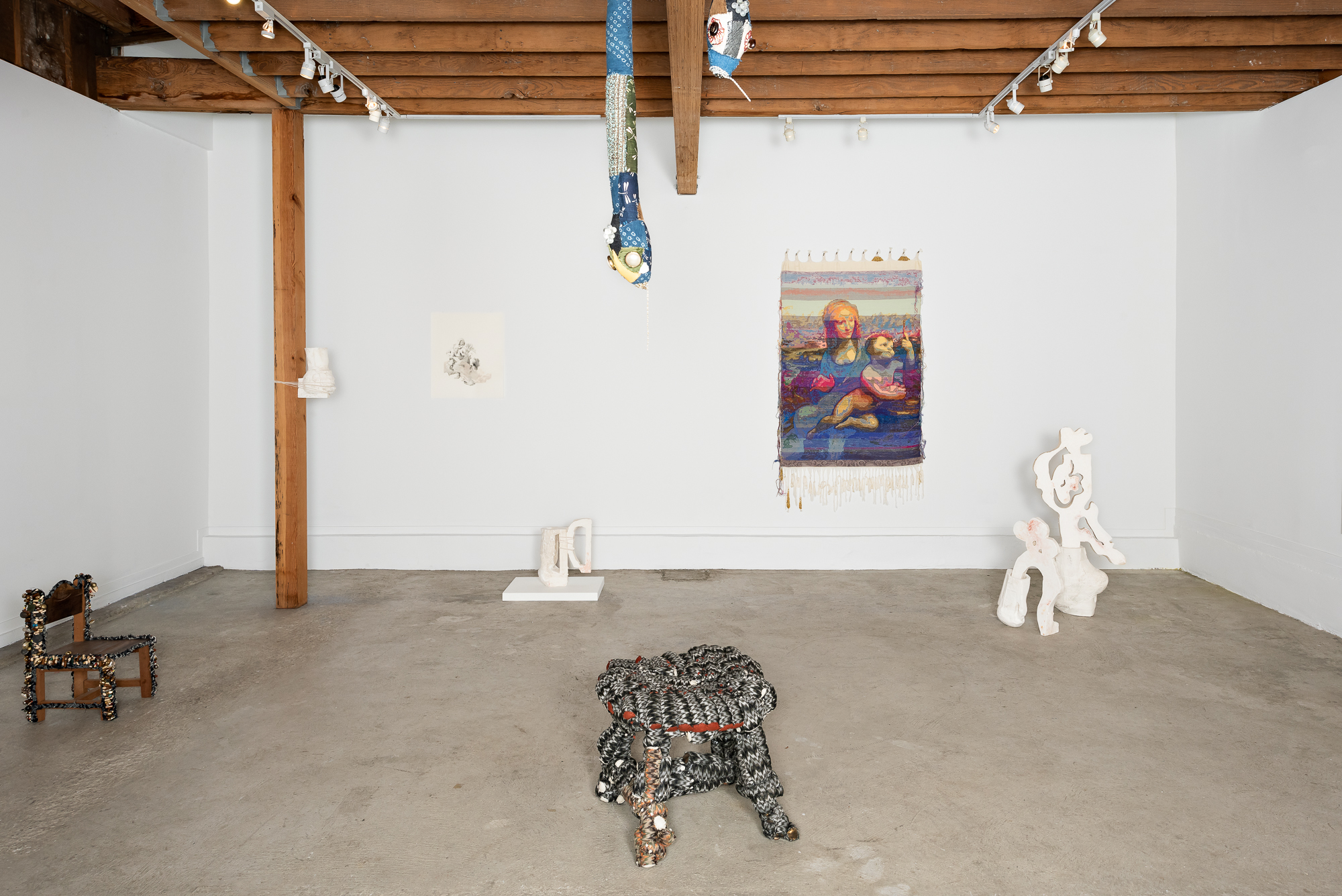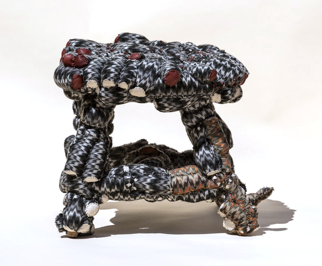 Dana Harel, originally trained as an architect uses the human body and psyche to explore the human relationship to memory and psychological impact on the body. Combining image transfer, drawing, and sculptural work, she alludes to the delicate balance of corporal resonance and restraint. Also using the built environment as a genesis for creation, Llane Alexis’ work is informed by his childhood experience living amid political strife alongside lifelong concerns about textile industry pollution. Through a unique sequence of braiding, weaving, and hand-sewing techniques, he transforms off-cut, unwanted fabric scraps into objects that serve as relics of an industry fraught with social complications, imbuing these discarded objects with new life.
