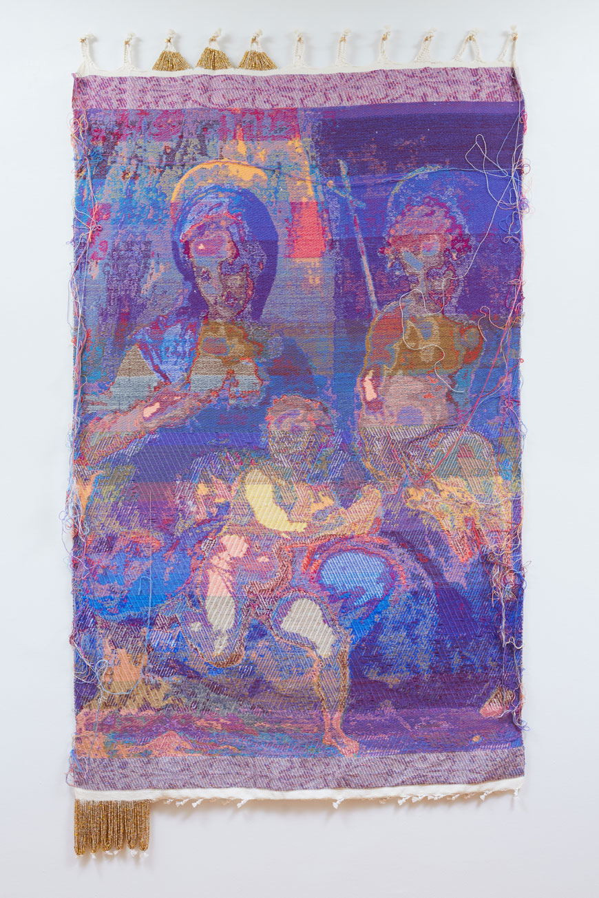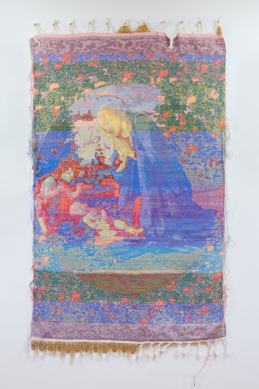 Positioning handweaving as a transdisciplinary practice, John Paul Morabito engages queerness, ethnicity, and the sacred through the medium of tapestry reimagined in the digital age. They have exhibited internationally including the Zhejiang Art Museum, Hangzhou City, China; Fresh Window Gallery, Brooklyn, NY; Dorksy Gallery Curatorial Projects, Long Island City, NY; Document, Chicago, IL; The Center for Craft, Creativity, and Design, Asheville, NC; and the John Michael Kohler Arts Center, Sheboygan, WI. Public collections include the Musée des maîtres et artisans du Québec, Montreal, QC, CA, and the Textile Resource Center at the School of the Art Institute of Chicago. In tandem with individual studio practice, Morabito engages numerous collaborative models. From 2007-2011, they served as a designer and weaver in the New York studio of Suzanne Tick Design. Further, they have collaborated with the photographer Laura Letinsky since 2013. Together they exhibit internationally and have developed collections for Skyline Design and the Renaissance Society. They hold a BFA from the Maryland Institute College of Art and an MFA from the School of the Art Institute of Chicago. Morabito is Assistant Professor, Adj. of Fiber and Material Studies at the School of the Art Institute of Chicago.