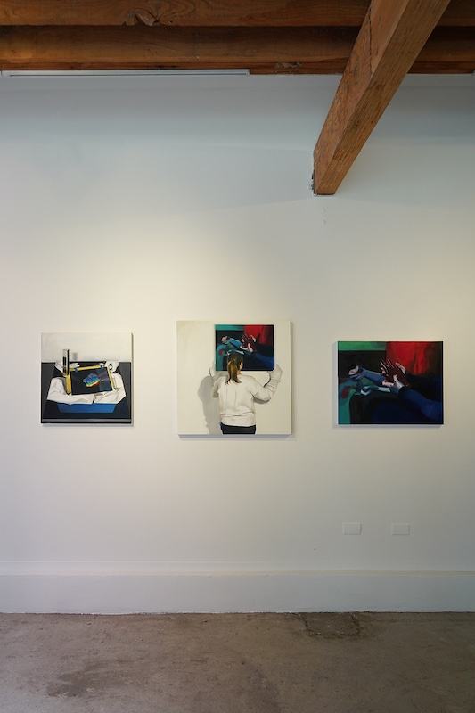 Image credit: Ruxue Zhang, Blue Gloves 2, 2019, Oil on canvas, 30 x 24 inches, courtesy of CULT Aimee Friberg Exhibitions
