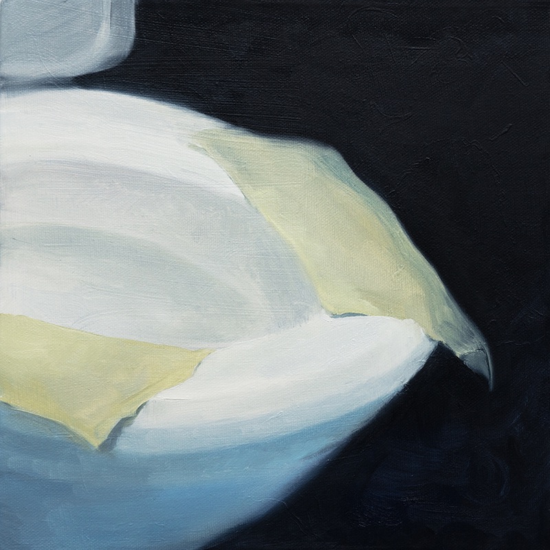 Blue Gloves 4, 2019, Oil on panel, 8 x 8 inches