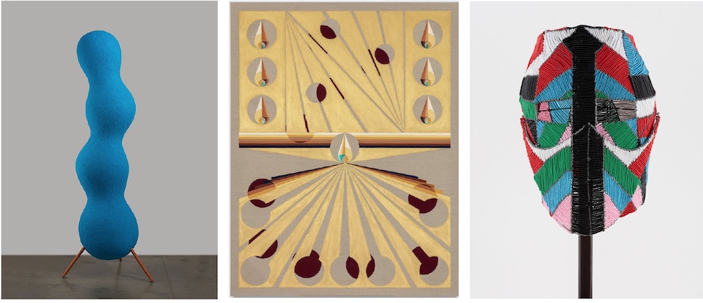Image credits: (from left): Masako Miki, Kyorinrin (animated ancient sutra) 2018; Eamon Ore-Giron, Infinite Regress LXIII, 2019; Curtis Talwst Santiago, African Knight Helmet 3, 2017