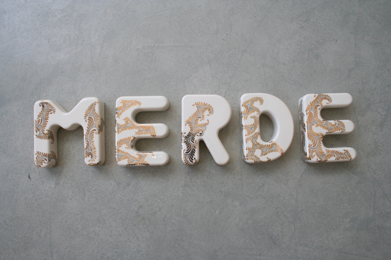 GABRIEL RICO, Merde, 2012, Ceramic and 24-karat gold and platinum paint, 120 x 20 x 6 cm / 47.2 x 7.8 x 2.3 inches, Edition: unique (from a series of 6 unique works)