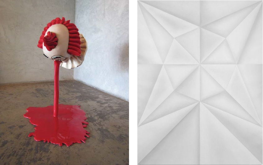 Images (from left): Cynthia Gutierrez, Deepwater Pagliacci, 2011, fiberglass, paint and iron; Gonzalo Lebrija, Unfolded Airplane, 2017, cotton paperCULT | Aimee Friberg Exhibition’s is pleased to present their inaugural exhibition VECINOS in a new Fell Street location opening on Friday, October 27 and running through January 20. VECINOS features five prominent artists living and working in Mexico: Eduardo Sarabia, Cynthia Gutiérrez, Gonzalo Lebrija, Gabriel Rico and Gwladys Alonzo. Aged between 26 and 45, they represent different career points within a new generation emerging from Mexico and gaining notoriety in international circles. Most established are Gonzalo Lebrija and Eduardo Sarabia each of whom have exhibited extensively internationally —Sarabia has a concurrent solo exhibition at the Mistake Room Los Angeles. Cynthia Gutiérrez, whose work is currently presented in the 57th Biennale di Venezia, has a solo museum exhibition currently at the SCAD Museum of Art in Savannah.
