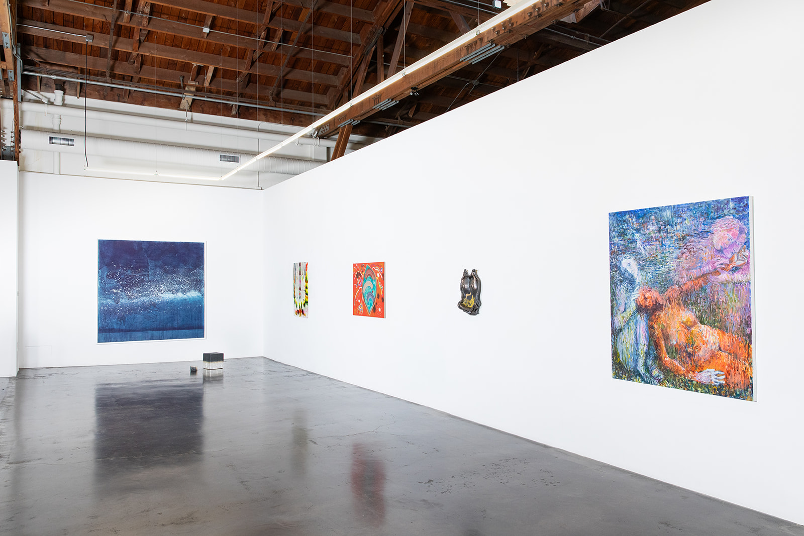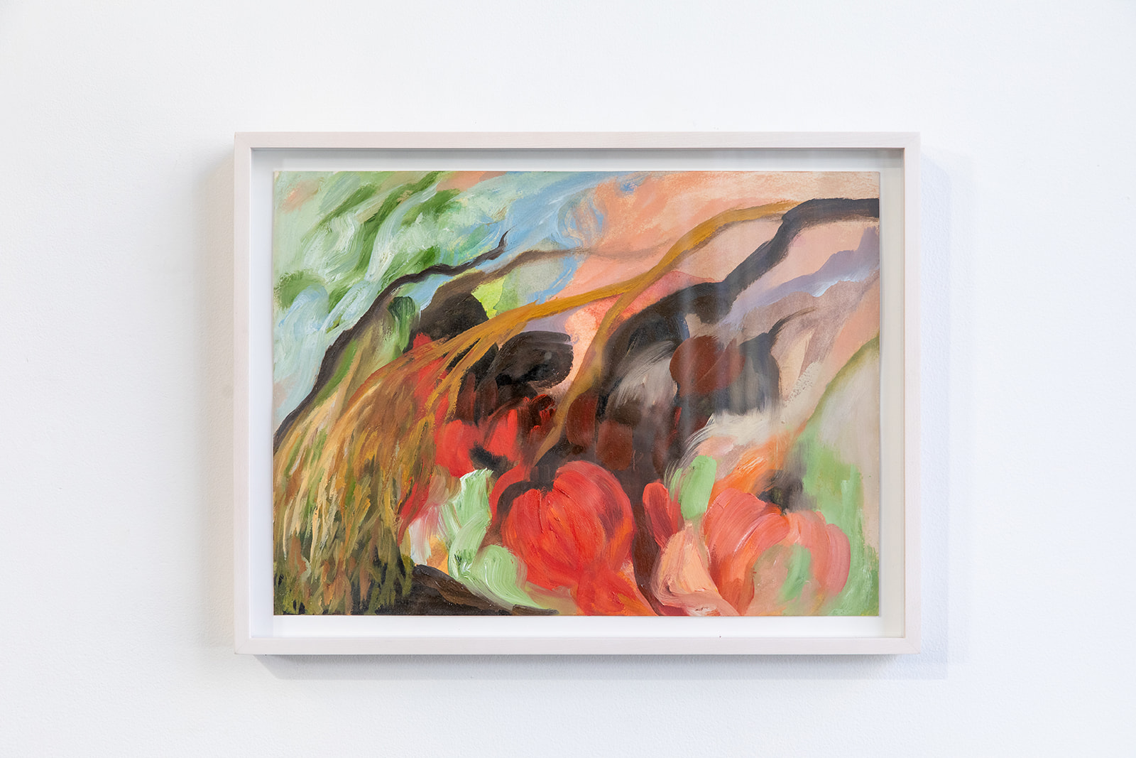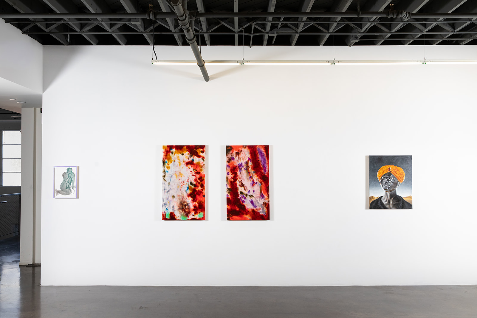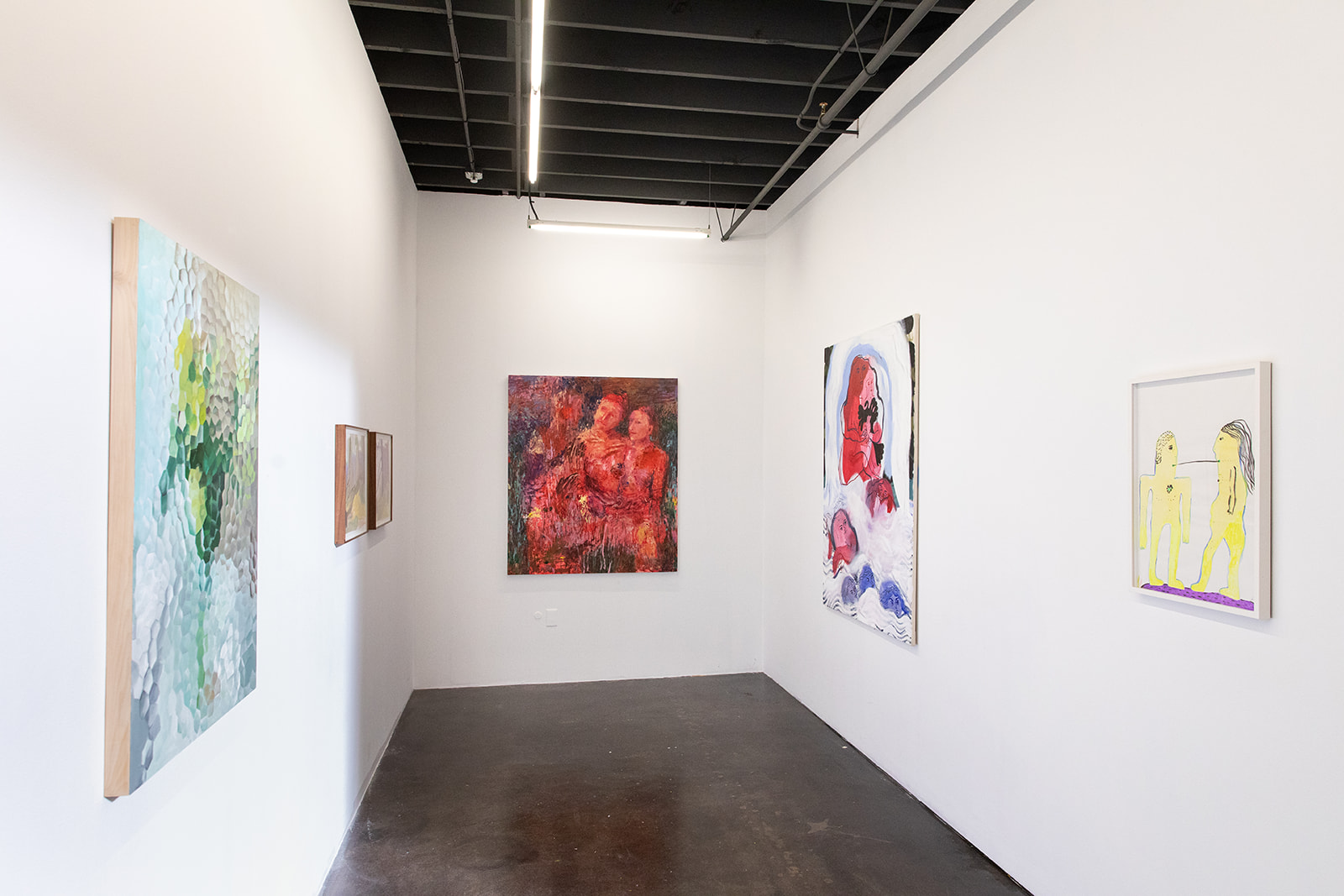 Questions of embodiment, care, and becoming run through the practices of Justine Di Fiore and Nasim Hantehzadeh. Di Fiore’s paintings emerge from the intimate labor of caregiving, where touch and gesture mirror the vulnerability of bodies held and tended. Hantehzadeh’s expansive, gestural compositions draw from pre-colonial mythologies and queer histories, channeling the body as a site of resistance, pleasure, and psychic release.