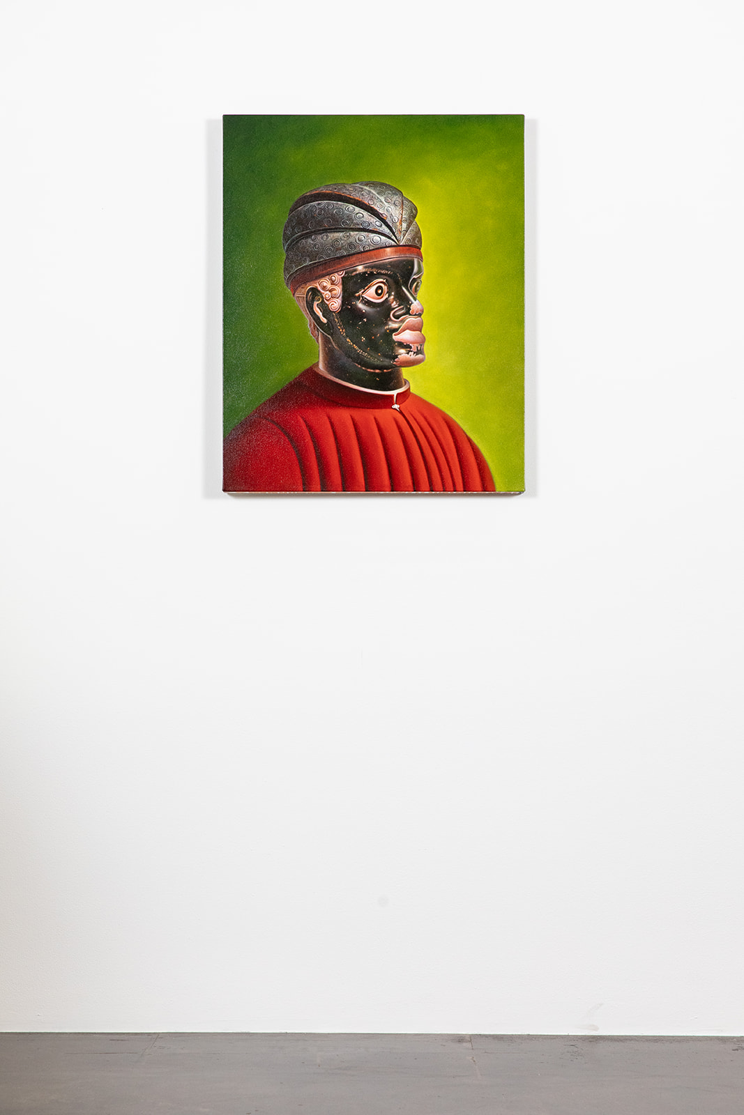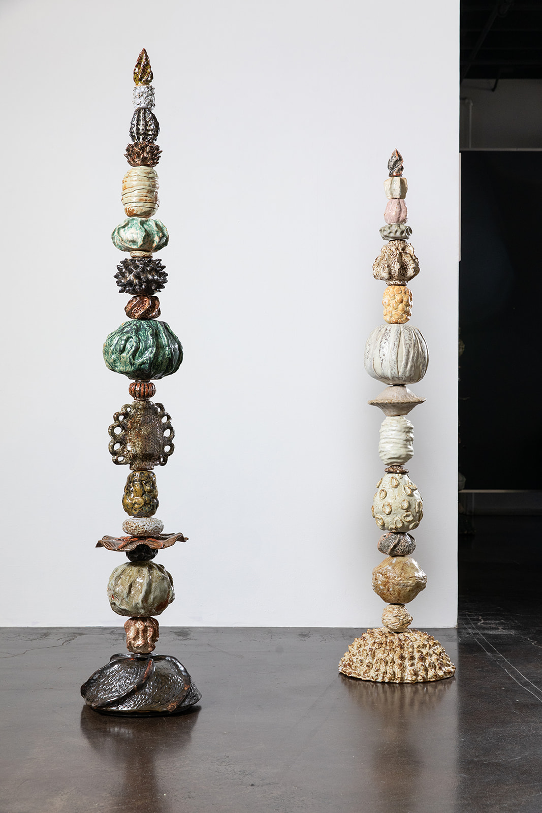 Mythmaking and speculative narrative are central to the works of Kajahl, Jessica Jane Charleston, Ruxue Zhang, Adrian Pally, and Anna Sidana. Kajahl constructs imagined courts and sovereign figures drawn from overlooked histories and ancient sources, positioning painting as a portal through which time and mythology collapse. Charleston’s works on paper explore the female form as a site of interior life, where figures dissolve, merge, and entwine in quiet, mythic scenes that hold care, vulnerability, and psychological transformation. Zhang approaches perception itself as subject matter, using repetition, memory, and alienation to examine the space between observer and world—between the terrestrial and the cosmic. Pally’s ceramic Spires, playful yet devotional, draw from horticulture and ritual objects, grounding wonder in the tactile language of clay. Sidana’s lush works on paper depict cotton and flora as carriers of memory and cultural inheritance, weaving personal and collective histories into dreamlike landscapes where beauty and brutality coexist.